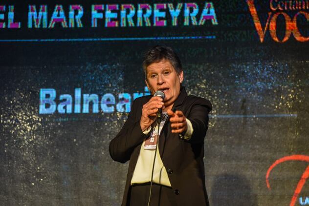 Durante su presentación, logró atrapar al público como nadie. Laura del Mar Ferreyra, ganadora del Certamen de Voces cautivó con su carisma y su expresión a la hora de cantar. Madre de ocho hijos, esta ama de casa oriunda de La Para se adueñó del escenario con su voz magnética.