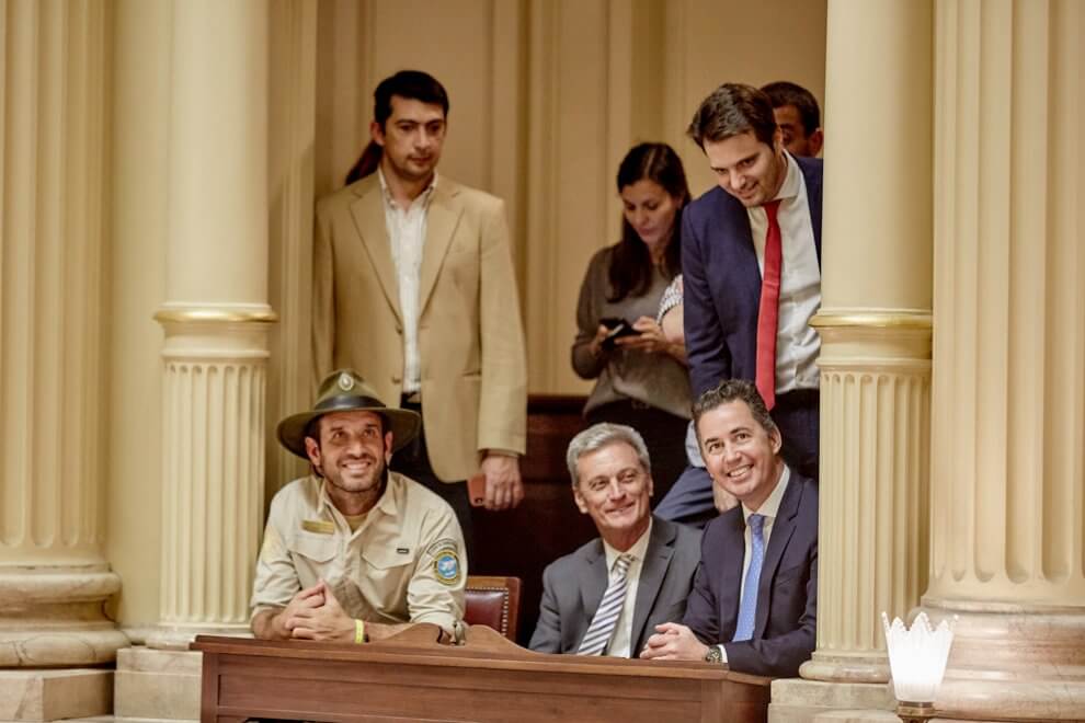 Posteriormente fueron recibidos en el Congreso por la senadora nacional Alejandra Vigo. Dónde luego se trasladaron al recinto y se aprobó la creación del nuevo Parque y Reserva Natural Ansenuza.