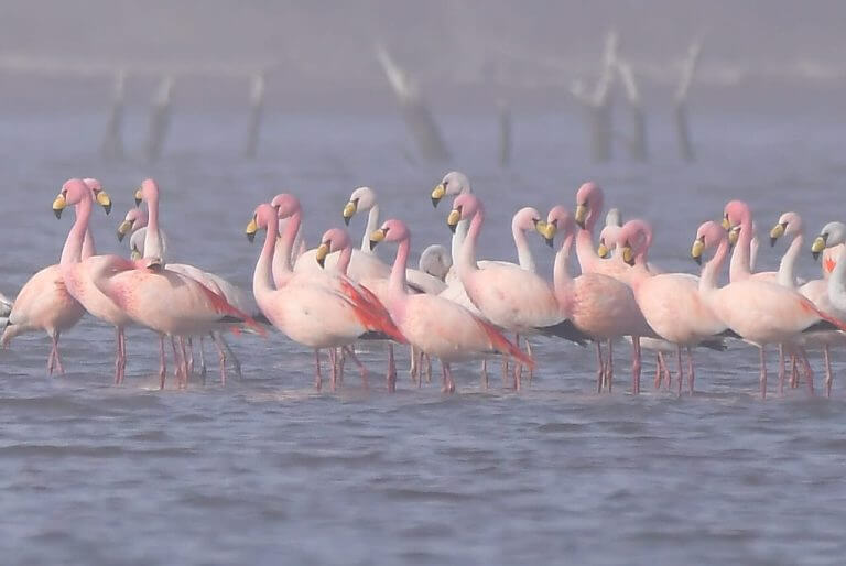 De las seis especies de flamencos que existen en el mundo, tres se encuentran en el cono sur de Sudamérica: el flamenco austral (Phoenicopterus chilensis), el flamenco andino o parina grande (Phoenicoparrus andinus) y el flamenco de James o parina chica (Phoenicoparrus jamesi).