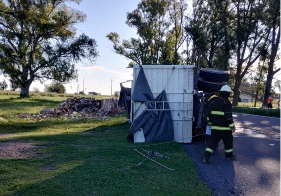 Este martes por la tarde, en el km 252 de la Ruta Nacional 19, en el ingreso oeste a Los Chañaritos, se produjo un siniestro vial cuando -por causas que se investigan- el acoplado de un camión se tumbó.