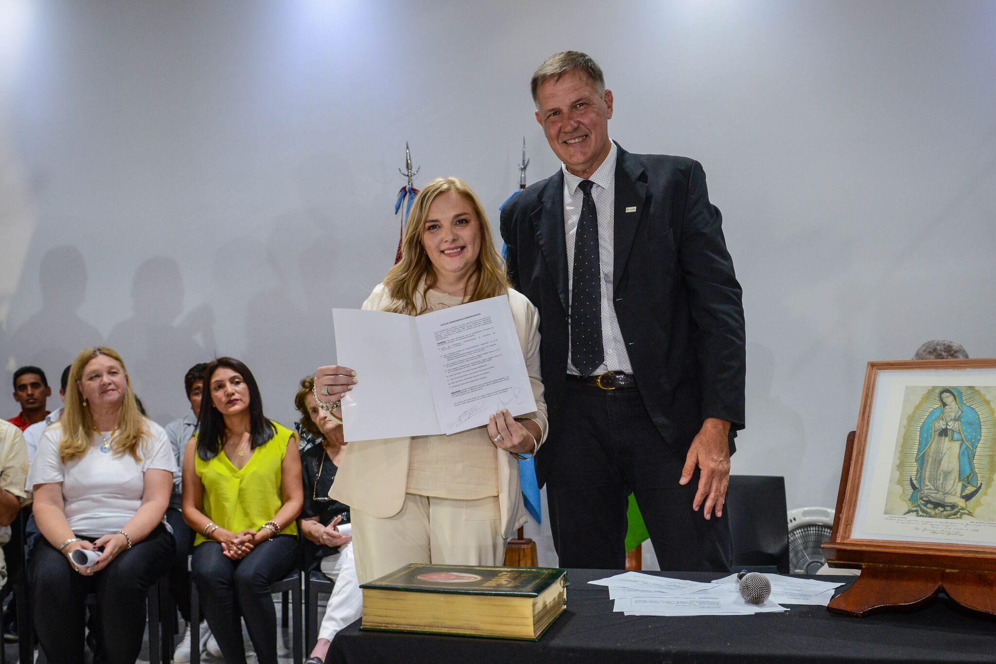 Un momento de gran emoción se vivió al hacer su juramento la nueva intendente, Lorena Peralta, quien lo hizo por “la memoria de mis padres y por la Virgen de Guadalupe”, mientras el público acompañaba con un cálido y espontáneo aplauso.