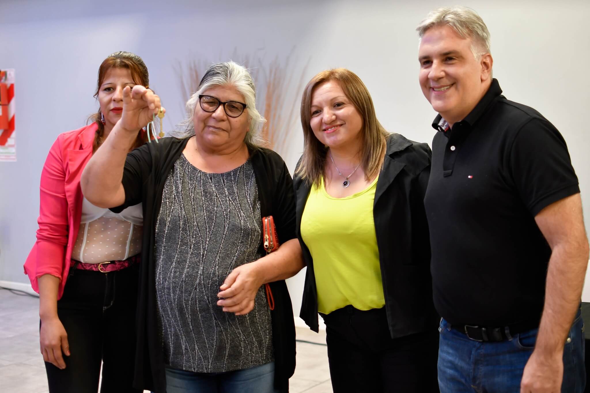 En primer lugar, se hizo entrega de las llaves de su vivienda a una vecina de la comuna, quien recibió su casa del plan Semilla.